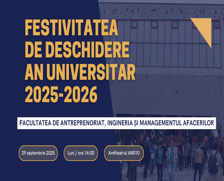 Dragi studenți, Vă așteptăm cu bucurie la ceremonia de deschidere a anului universitar, care va avea loc: 📅 Luni, 29 septembrie 2025⏰ Ora 14:00📍 Amfiteatrul AN010, Universitatea Politehnica din